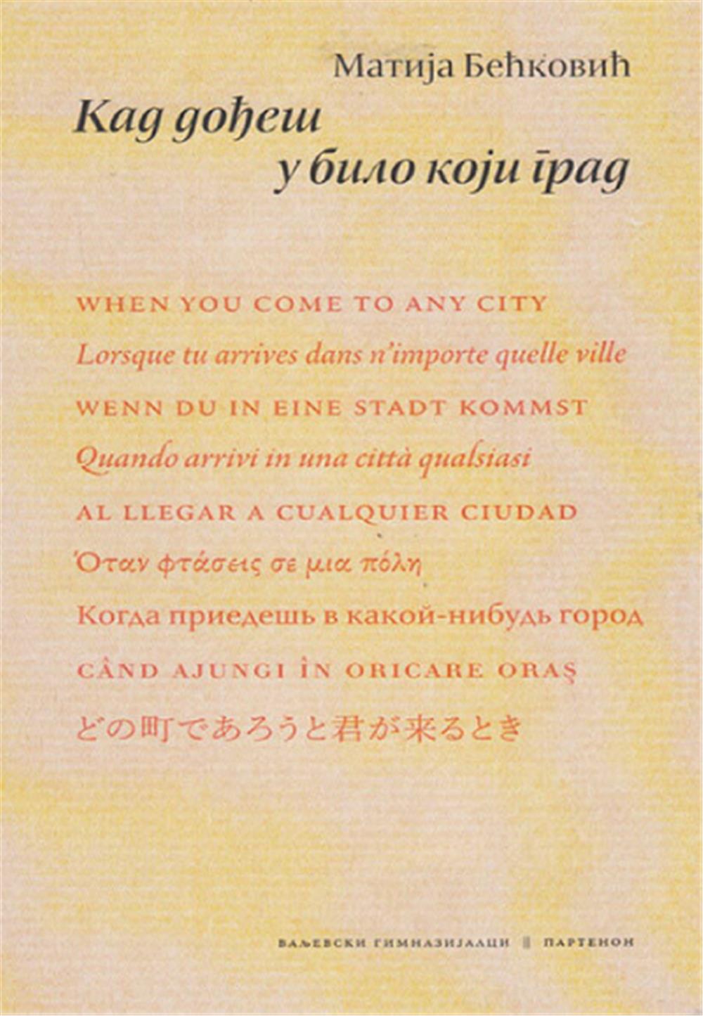 Poema Matije Bećkovića “Kada dođeš u bilo koji grad” prevedena na italijanski, francuski, engleski, nemački, španski, ruski, grčki, rumunski, japanski.