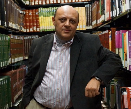 Anhel Esteban je profesor hispanoameričke književnosti na Univerzitetu u Granadi i gostujući predavač na više od trideset univerziteta u Americi, Evropi i Aziji, uključujući Harvard, Jejl, Sorbonu itd. Napisao je preko šezdeset knjiga o hispanoameričkoj literaturi, među kojima je i knjige Pisac u svom raju – trideset velikih pisaca koji su bili bibliotekari (Dereta, 2016) i Od Gaba do Marija: rodoslov hispanoameričkog buma (Dereta, 2016), u saradnji sa Anom Galjego.