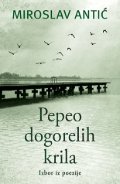 Pepeo dogorelih krila je izbor pesama i kratke proze koji prati istoriju literarnog i intimnog života. Tekstovi Miroslava Antića – od naizgled prozračnih i veselih pesama za decu, preko mladalačkih, ljubavnih, porodičnih, pa sve do onih ironičnih i mračnih – ulančani su tako da pokazuju kako se njegov poetski ciklus ne može odvojiti od životnog, što pridružuje vojvođanskog barda posebnoj vrsti književnih velikana – onih koji nisu poetizovali svoj život već su živeli svoju poeziju...