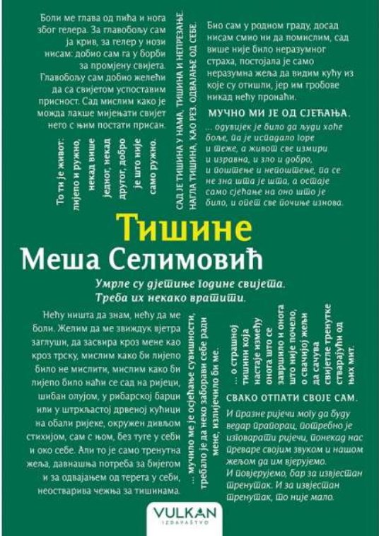 Osvrćući se na književno stvaralaštvo u knjizi Sjećanja, Meša Selimović zapisao je sledeće: „Кad je izašao iz štampe moj prvi roman (’Tišine’), ja sam imao pedeset i jednu godinu! Niko nije znao koliko sam strahova pobijedio u sebi dok se nisam usudio da izađem pred čitaoce“. Već na prvim stranicama Tišina prepoznaćete glas Meše Selimovića. Ovoga puta ispripovedaće vam priču posle koje će sve tišine odzvanjati drugačije.