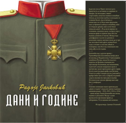 Knjiga Radoja Jankovića “Dani i godine” objavljena je prvi put 1926. godine i decenijama je bila nepravedno zaboravljena. Dokumentarna knjiga, pisana rukom učesnika Prvog svetskog rata, govori o stradanjima srpske vojske i naroda, ponosu, poštenju i hrabrosti. Po delovima ove knjige snimljen je i film Marš na Drinu. Izuzetno svedočenje velikog čoveka, oficira i diplomate o teškim i sudbonosnim trenucima za kraljevsku Srbiju.