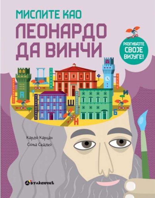 Na granici između priručnika i razigrane laboratorije, knjiga MISLITE KAO LEONARDO DA VINČI put je kroz priče, zadatke i igre pomoću kojih ćete otkriti kako da vežbate svoj um za radoznalost, kreativnost, tehniku i usavršavanje, a sve to krećući se stopama najzagonetnijeg genija svih vremena, koji je uvek imao mnogostrana interesovanja.