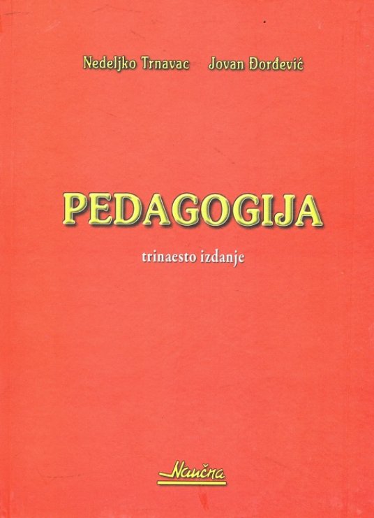 ... Do sada je na srpskom govornom području objavljeno oko pedeset udžbenika "Pedagogije". Prva dva su "Predloženia Pedagogie" Dimitrija Isailovića i "Pedagogija i metodika" Platona Atanackovića, objavljeni u Budimu 1814. godine, a najnovije je ovo naše, trinaesto izdanje "Pedagogije" Nedeljka Trnavca i Jovana Đorđevića, profesora sa Grupe za pedagogiju Filozofskog fakulteta u Beogradu.