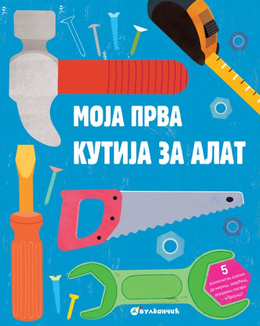 Izvadi sav alat iz ove knjige i zabava može da počne! Pronaći ćeš metar da izmeriš i testeru da izrežeš drvo, ključ da zategneš zavrtnje, šrafciger da zavrneš šrafove i čekić da ukucaš eksere. Ova pametna knjiga je sjajan način da mališani kroz igru savladaju nove veštine. 5 različitih alatki da izmeriš, zašrafiš i prebrojiš. Izmeri komad drveta pomoću metra, uzmi šrafciger i zašrafi tri šrafa ili ukucaj četiri eksera čekićem. Uz pet različitih alatki, kao i navrtnje i eksere, i učenje brojeva do 5, ova pametna knjiga je sjajan način da mališani kroz igru savladaju nove veštine.