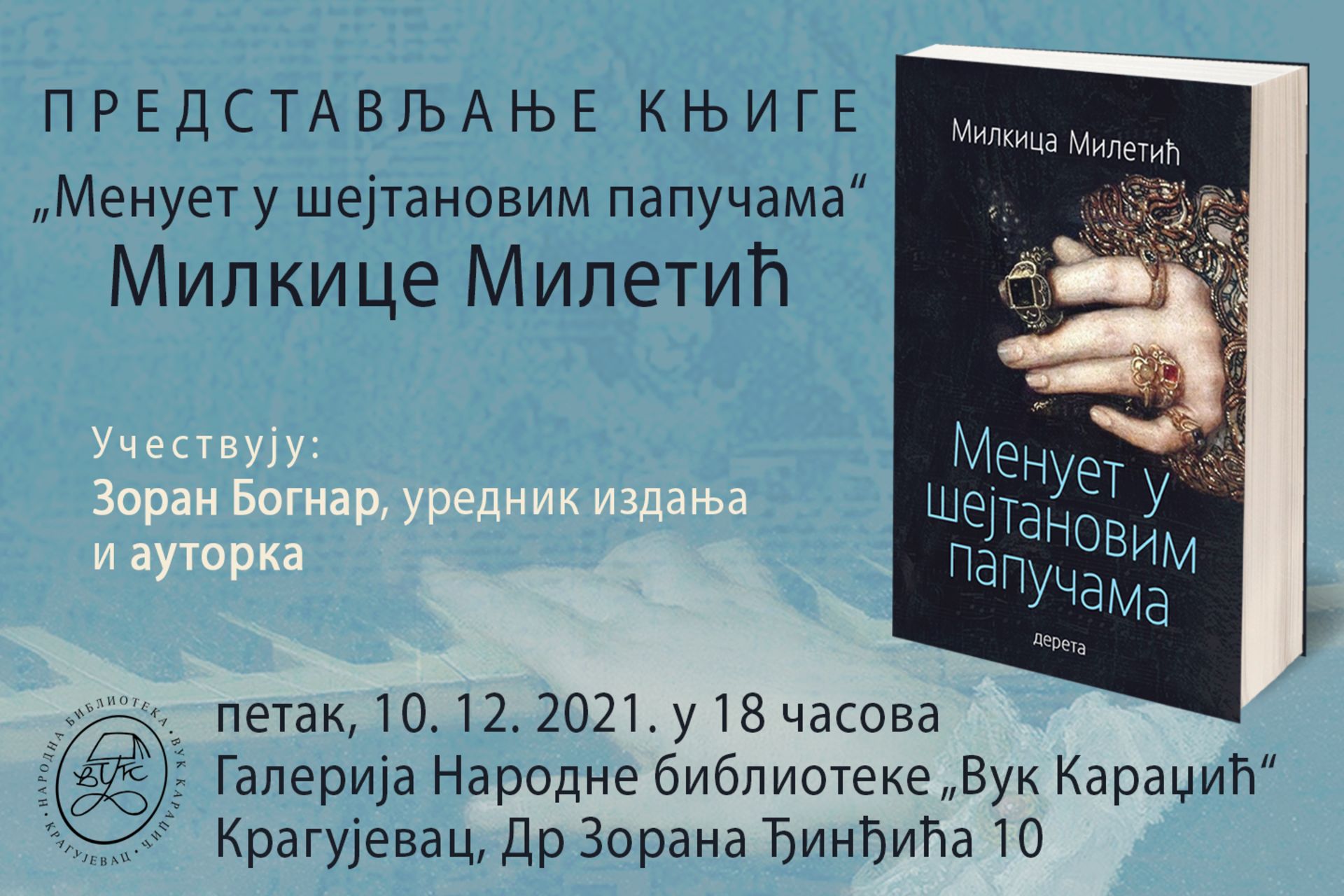 Predstavljanje knjige „Menuet u šejtanovim papučama” Milkice Miletić u Kragujevcu