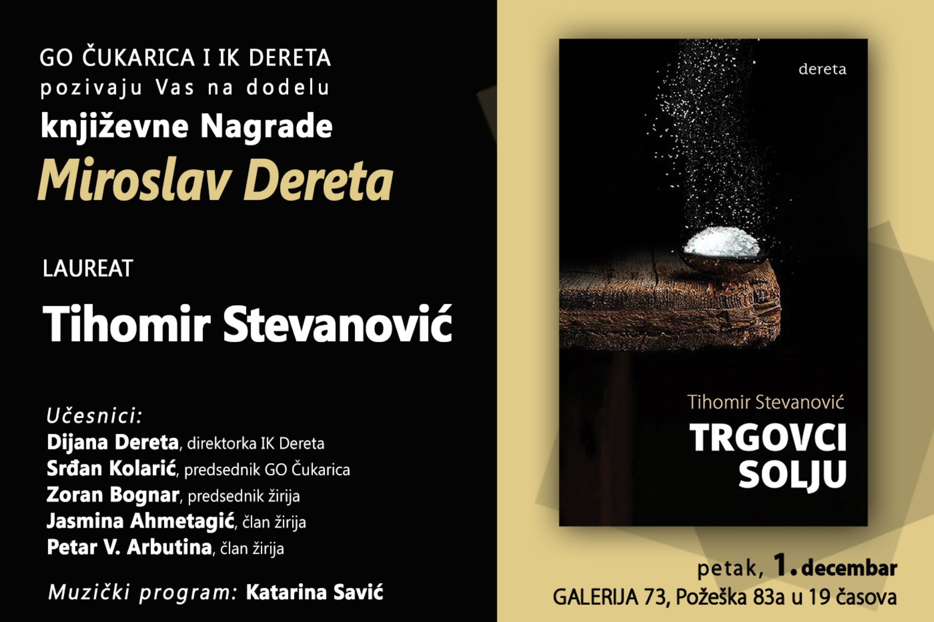 Dodela XVIII književne Nagrade za neobjavljeni roman „Miroslav Dereta“