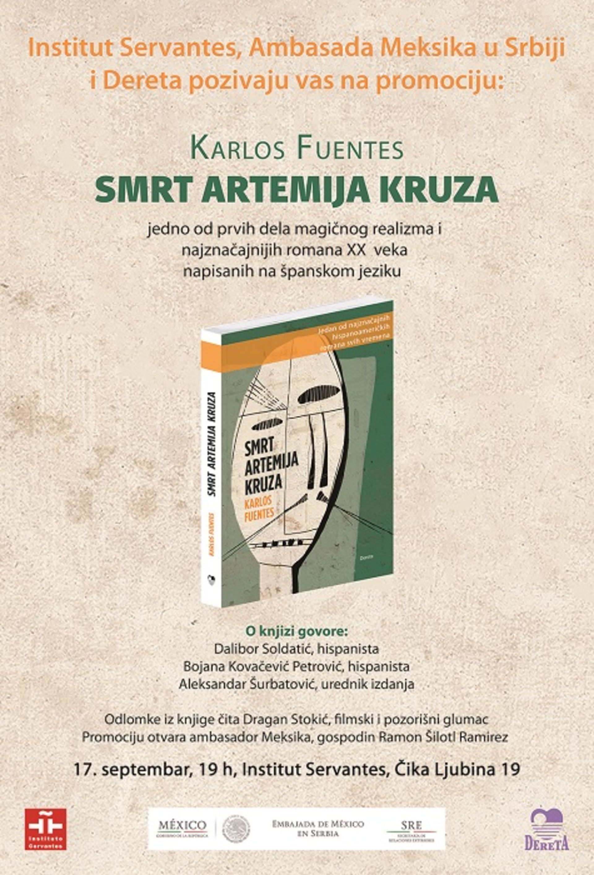 Institut Servantes, Ambasada Meksika u Srbiji i Dereta pozivaju vas na promociju knjige „Smrt Artemija Kruza“.