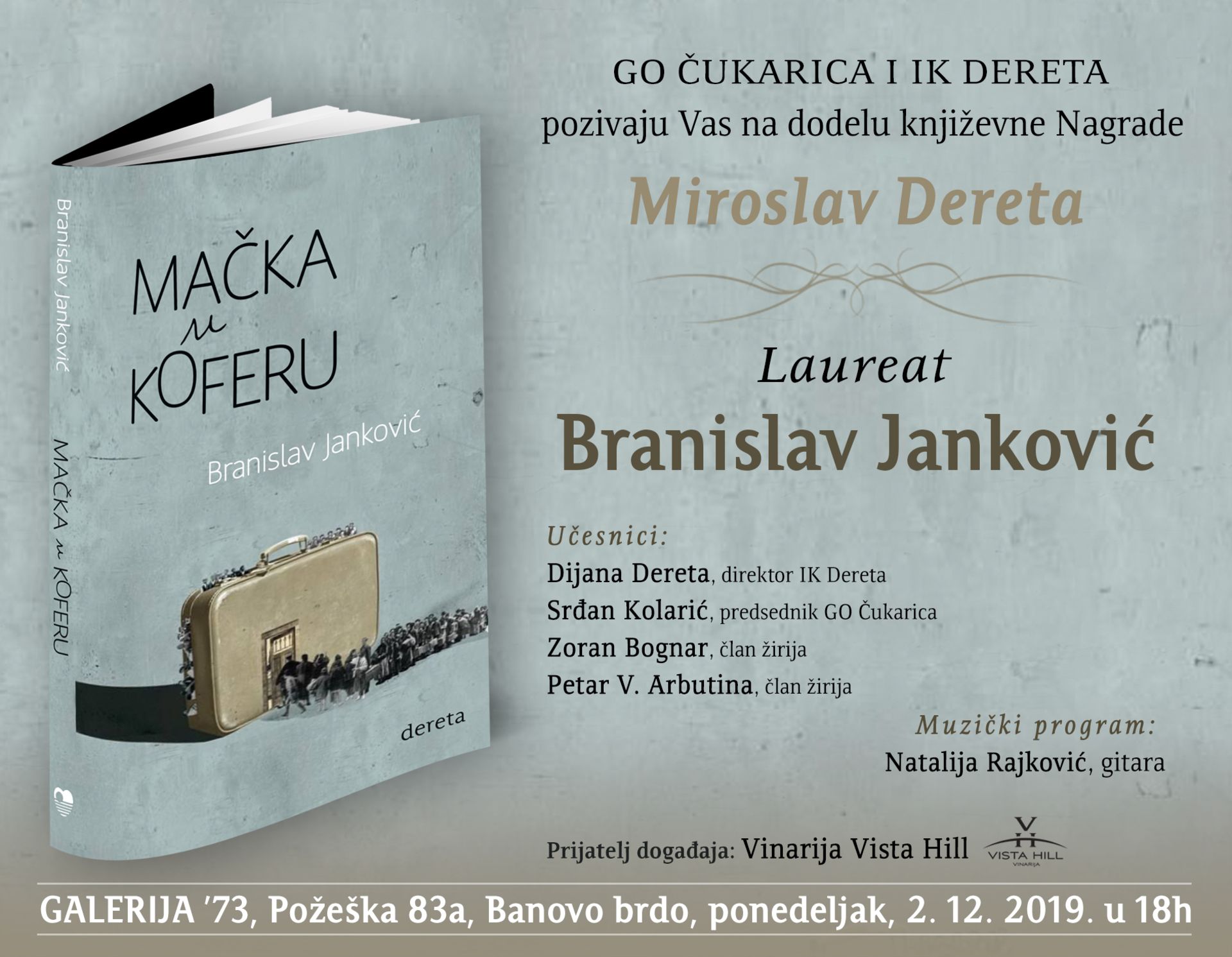 Laureat za 2019. godinu je Branislav Janković s romanom Mačka u koferu.