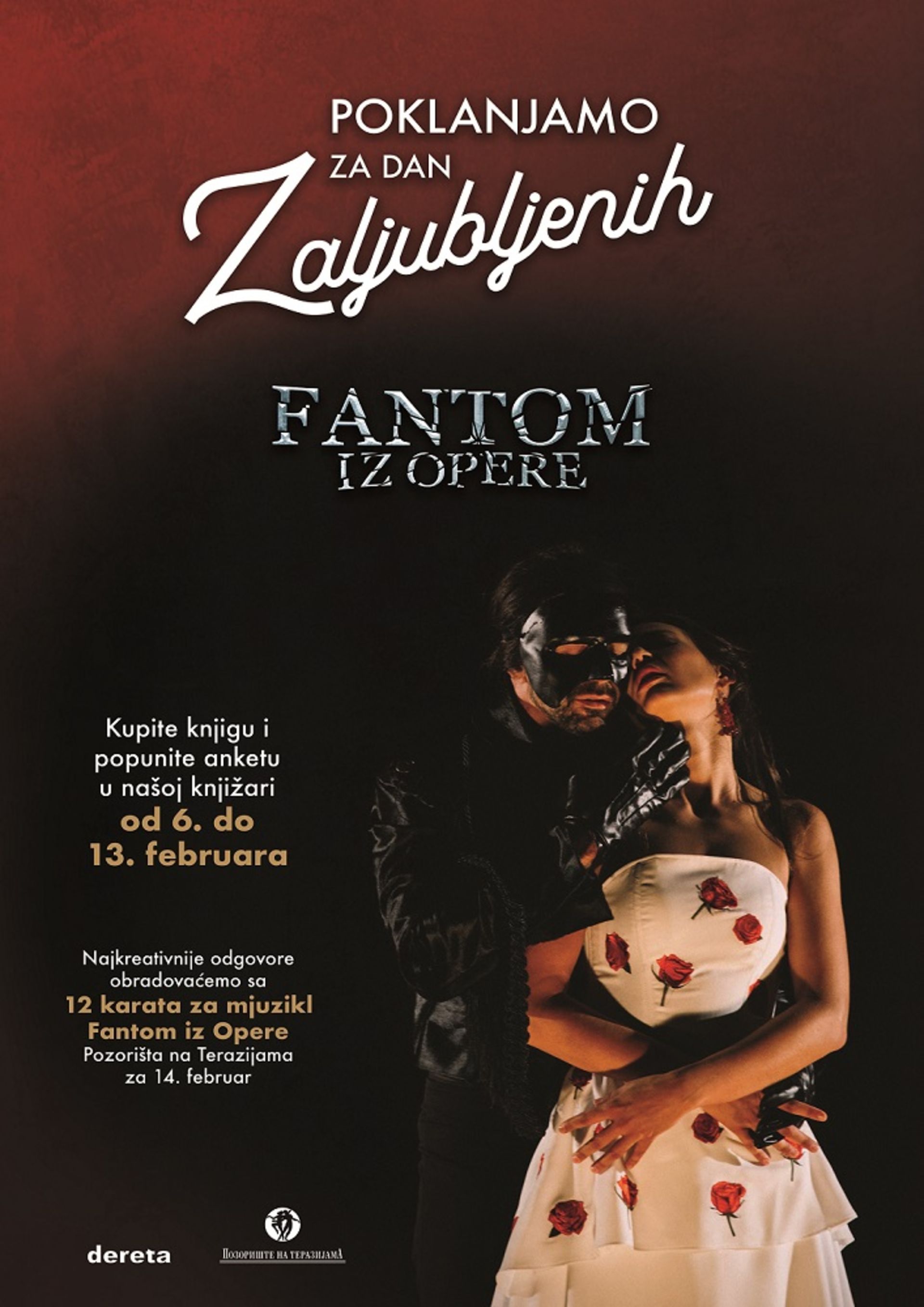 Najkreativnije odgovore obradovaćemo sa 12 karata za mjuzikl Fantom iz Opere Pozorišta na Terazijama koji je na repertoaru 14. februara.