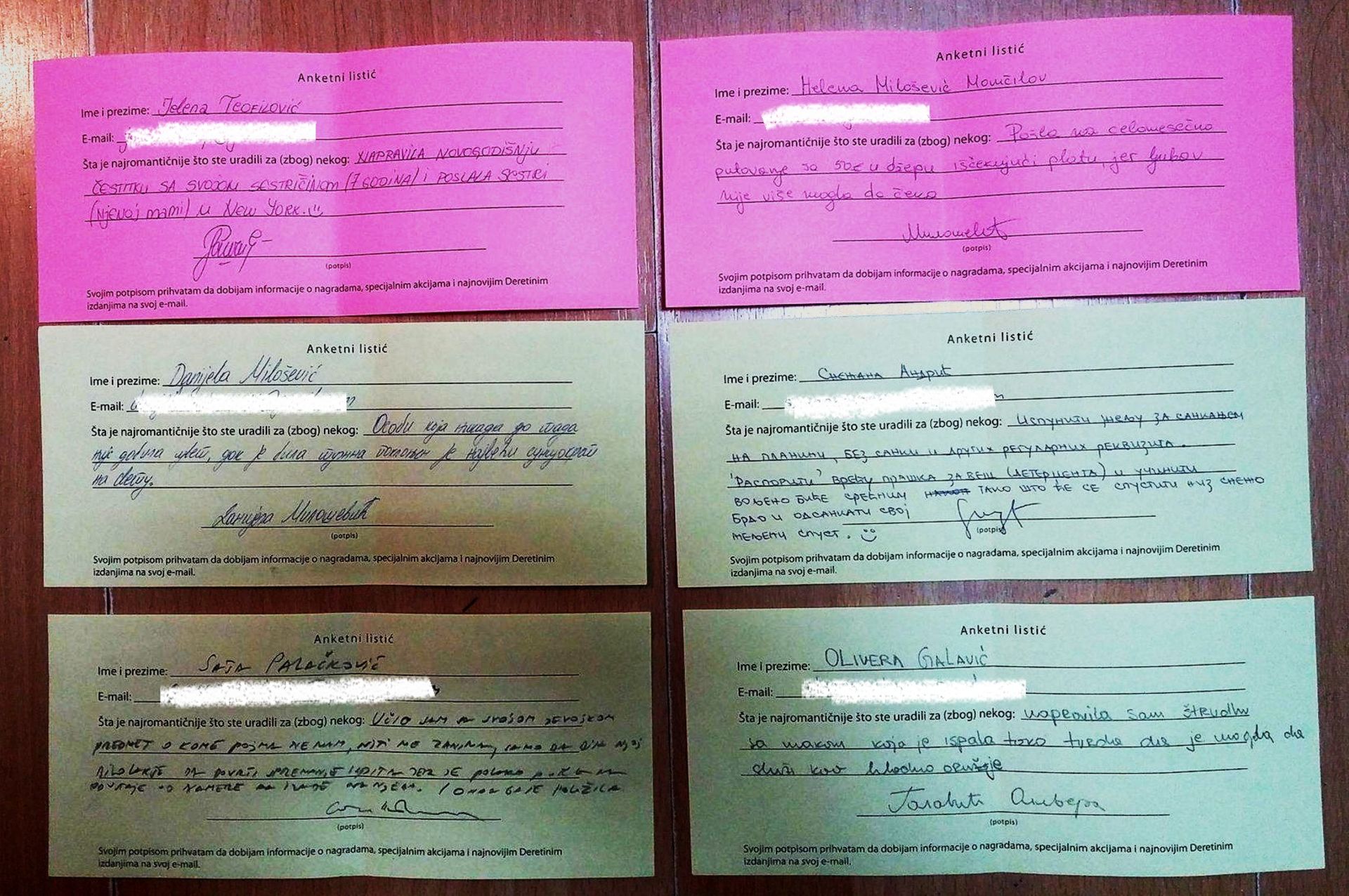 Po dve karte za predstavu dobili su: Helena Milošević Momčilov, Jelena Teofilović, Snežana Andrić, Danijela Milošević, Olivera Galavić i Saša Palačković