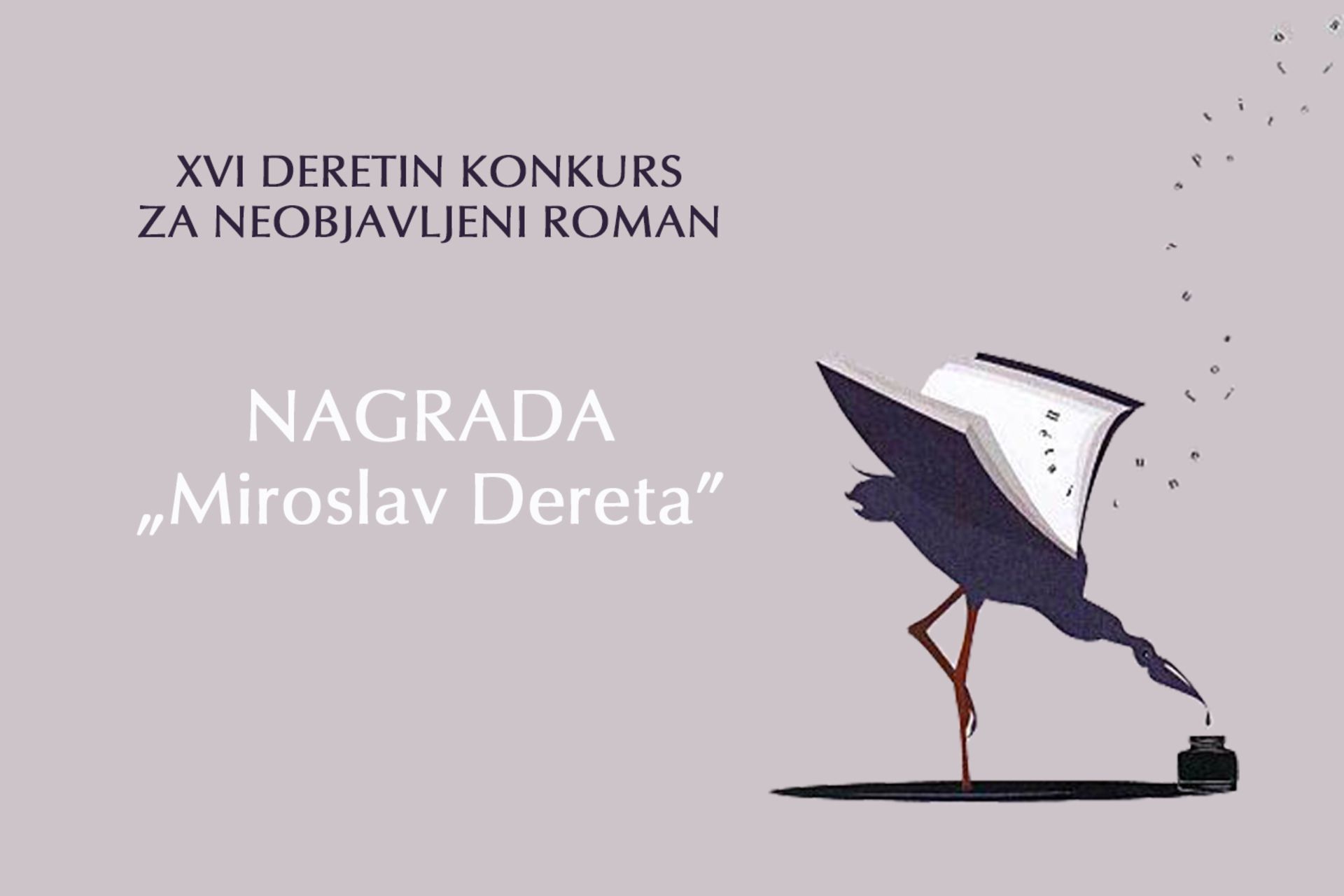 Izdavačka kuća Dereta raspisala je XVI po redu konkurs za dodelu književne Nagrade „Miroslav Dereta“ za najbolji neobjavljeni roman.