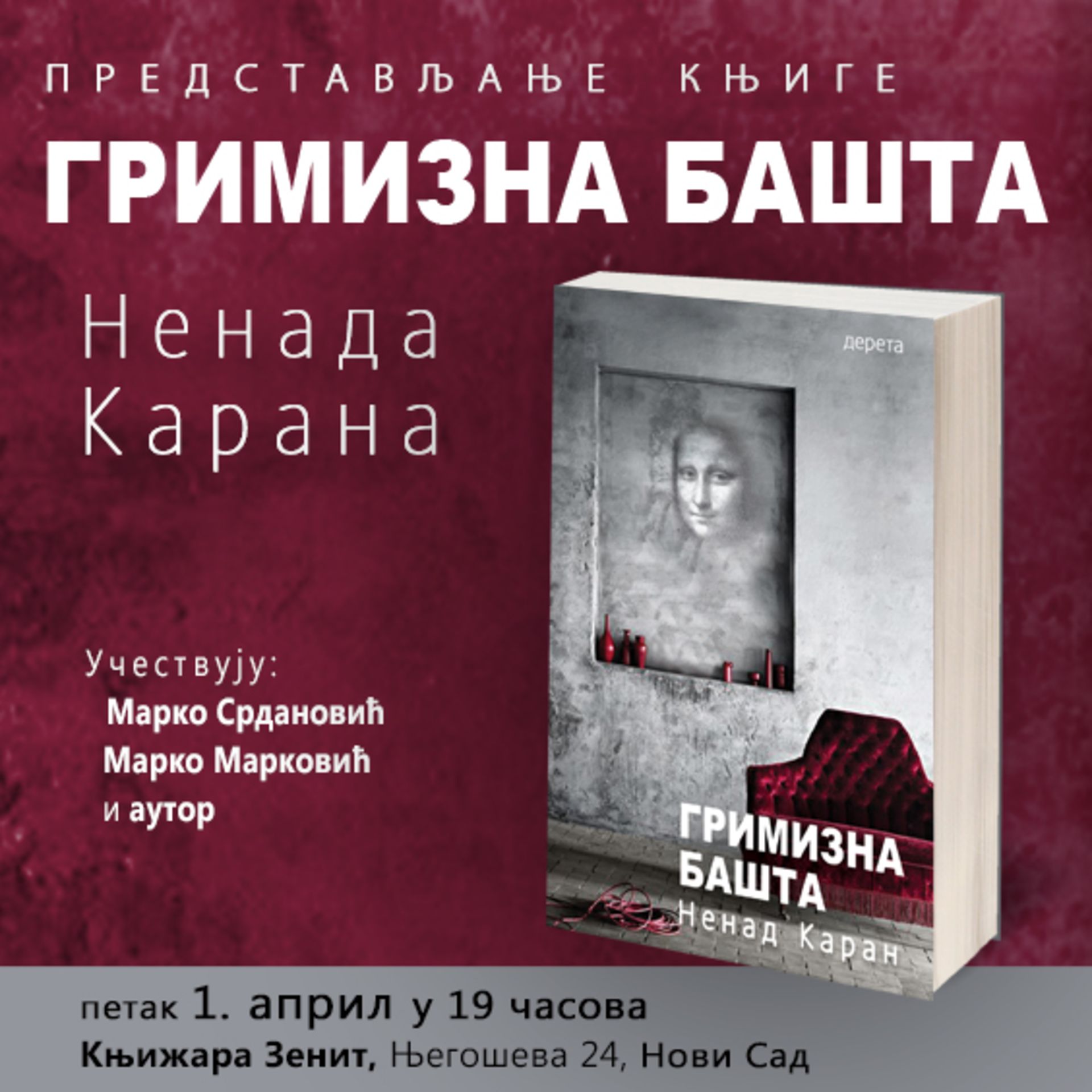 Predstavljanje knjige „Grimizna bašta” Nenada Karana u Novom Sadu