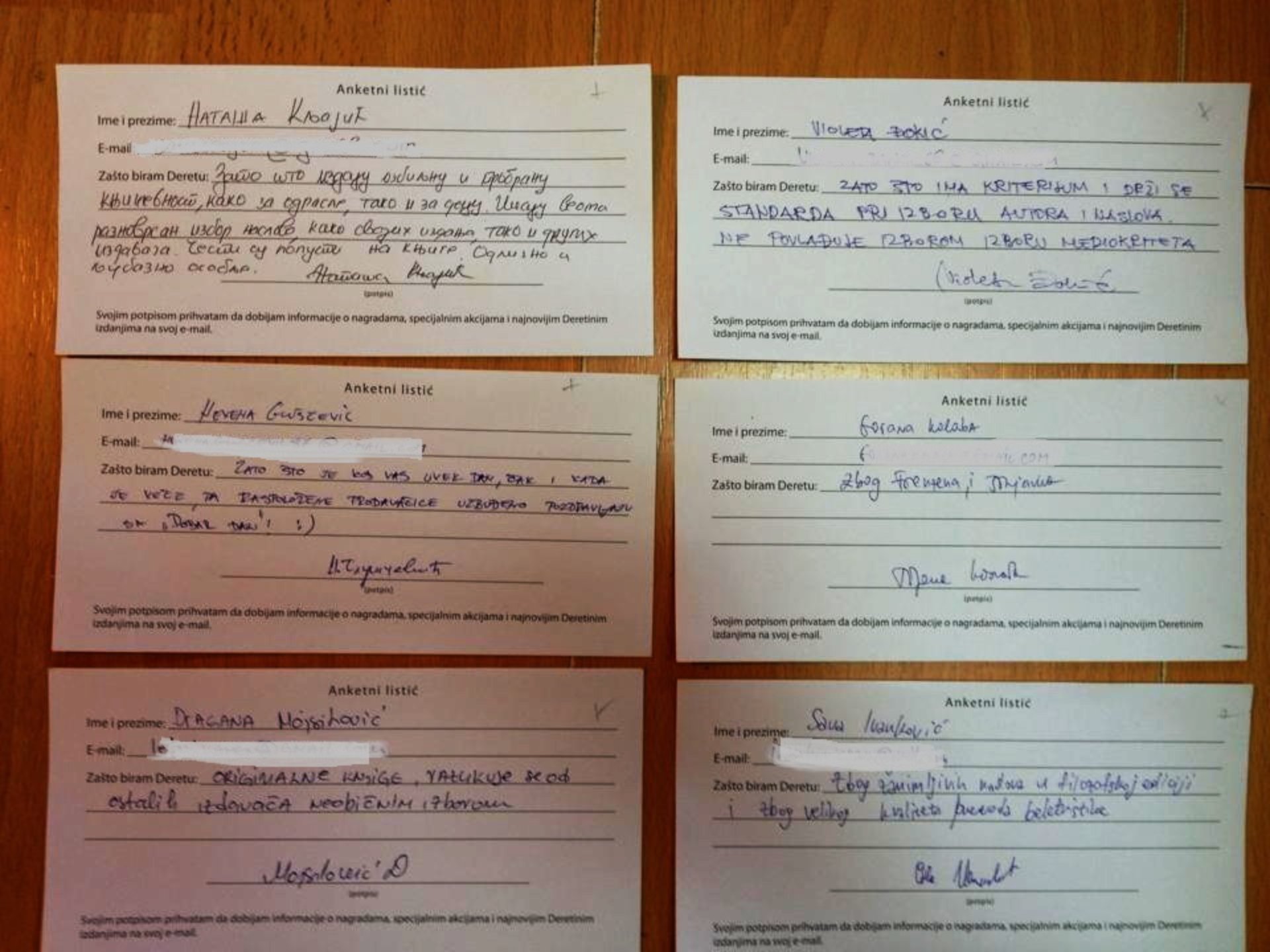 Tokom Dana prevedene književnosti sa engleskog u Dereti posetioci naše knjižare su popunjavali anketne listiće.
