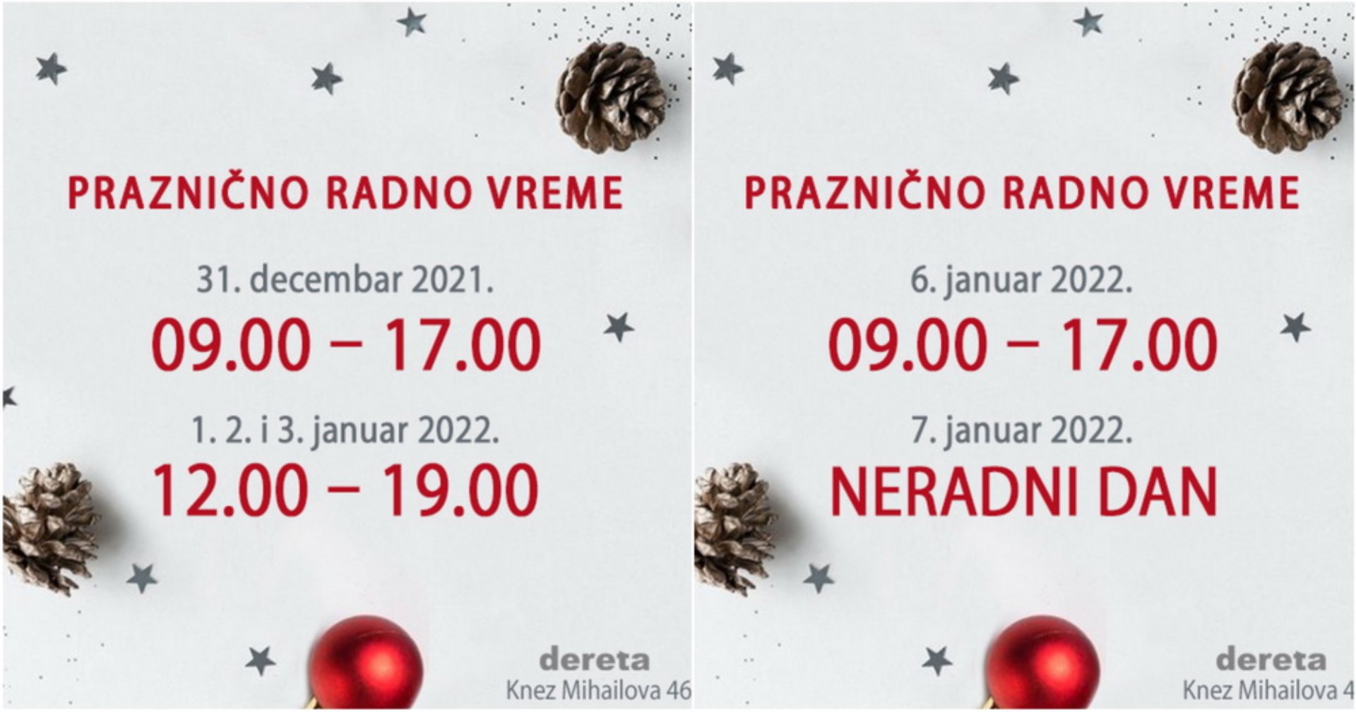 Praznično radno vreme knjižare Dereta