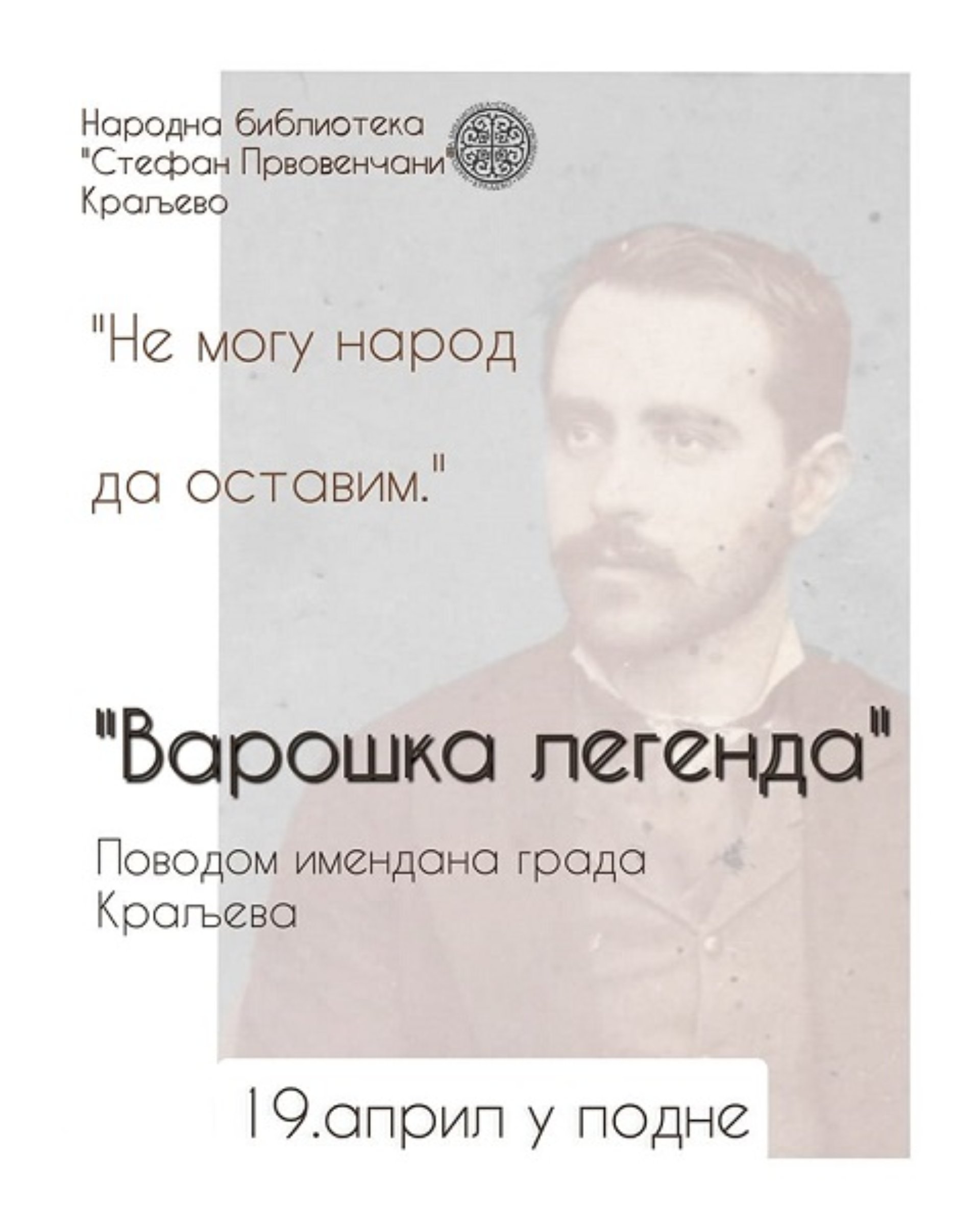 19. aprila u podne, povodom obeležavanja sto četrdesetog imendana grada Кraljeva, u kraljevačkoj Narodnoj biblioteci „Stefan Prvovenčani“ predstavićemo „Varošku legendu“.