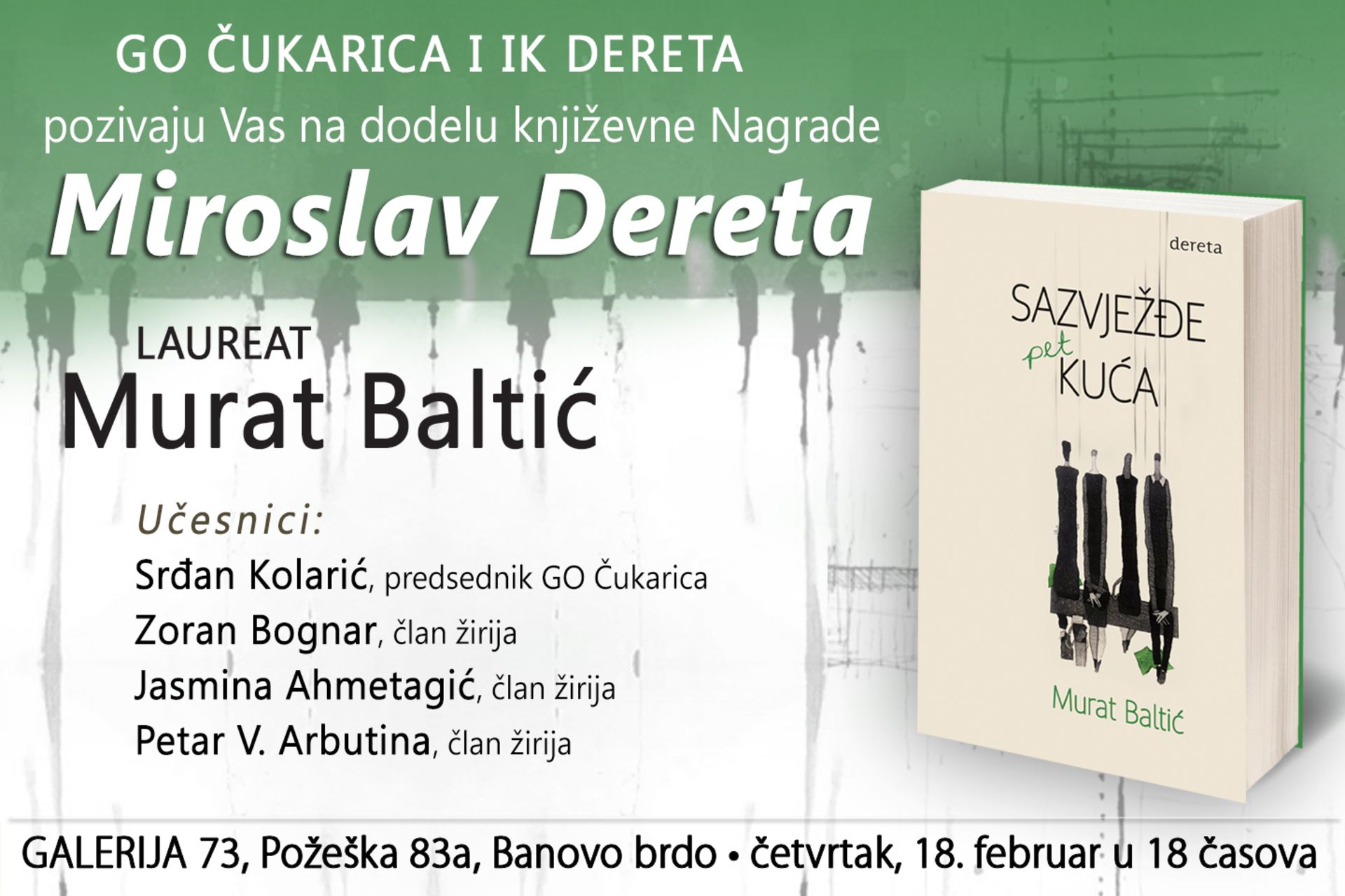 Laureat za 2020. godinu je Murat Baltić s romanom Sazvježđe pet kuća.