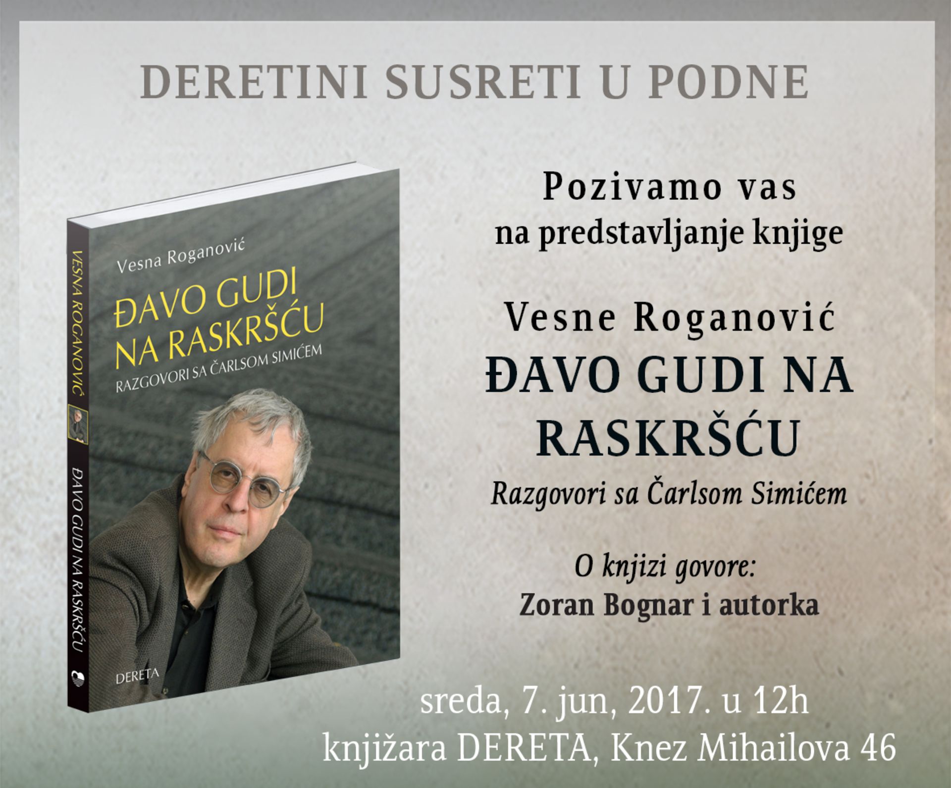 Pozivamo Vas na predstavljanje knjige Đavo gudi na raskršću: razgovori sa Čarlsom Simićem Vesne Roganović.