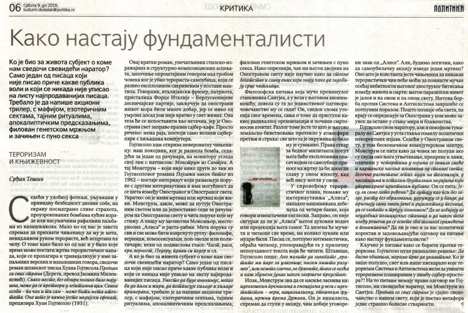 Prikaz romana „Prognan sa svih strana“ u u „Politiciˮ