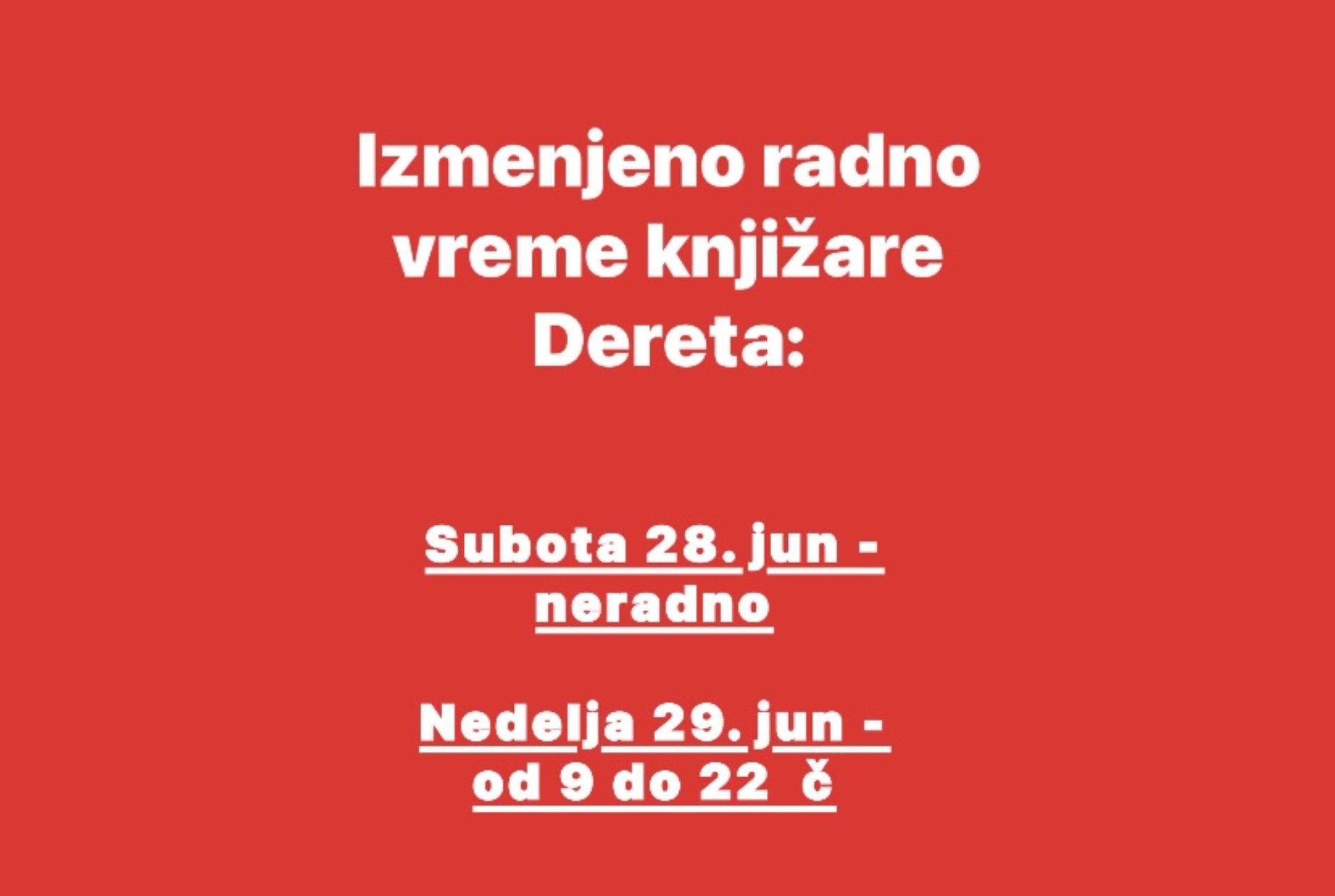 Radno vreme knjižare Dereta tokom predstojećeg vikenda