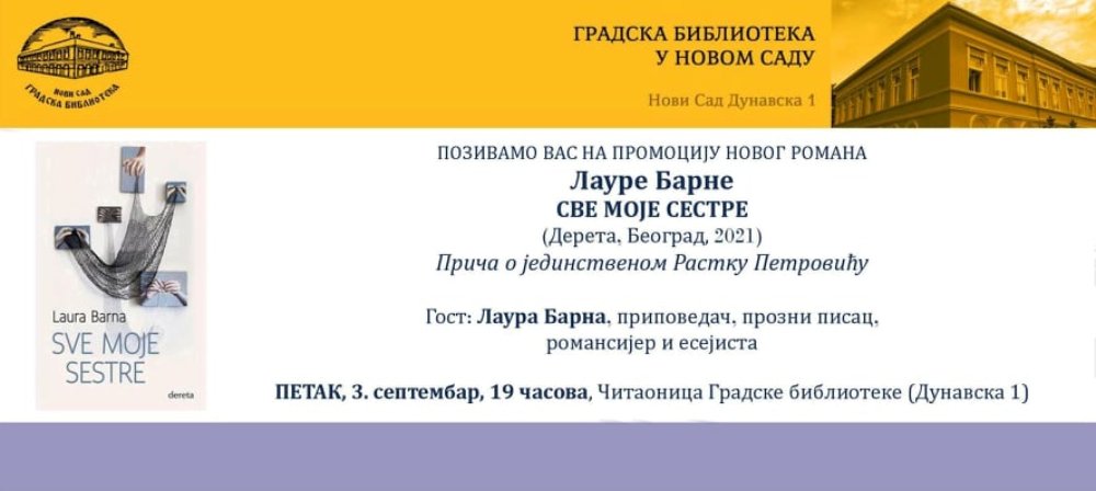U petak 3. septembra u Gradskoj biblioteci u Novom Sadu predstavljena je knjiga Sve moje sestre, autorke Laure Barne