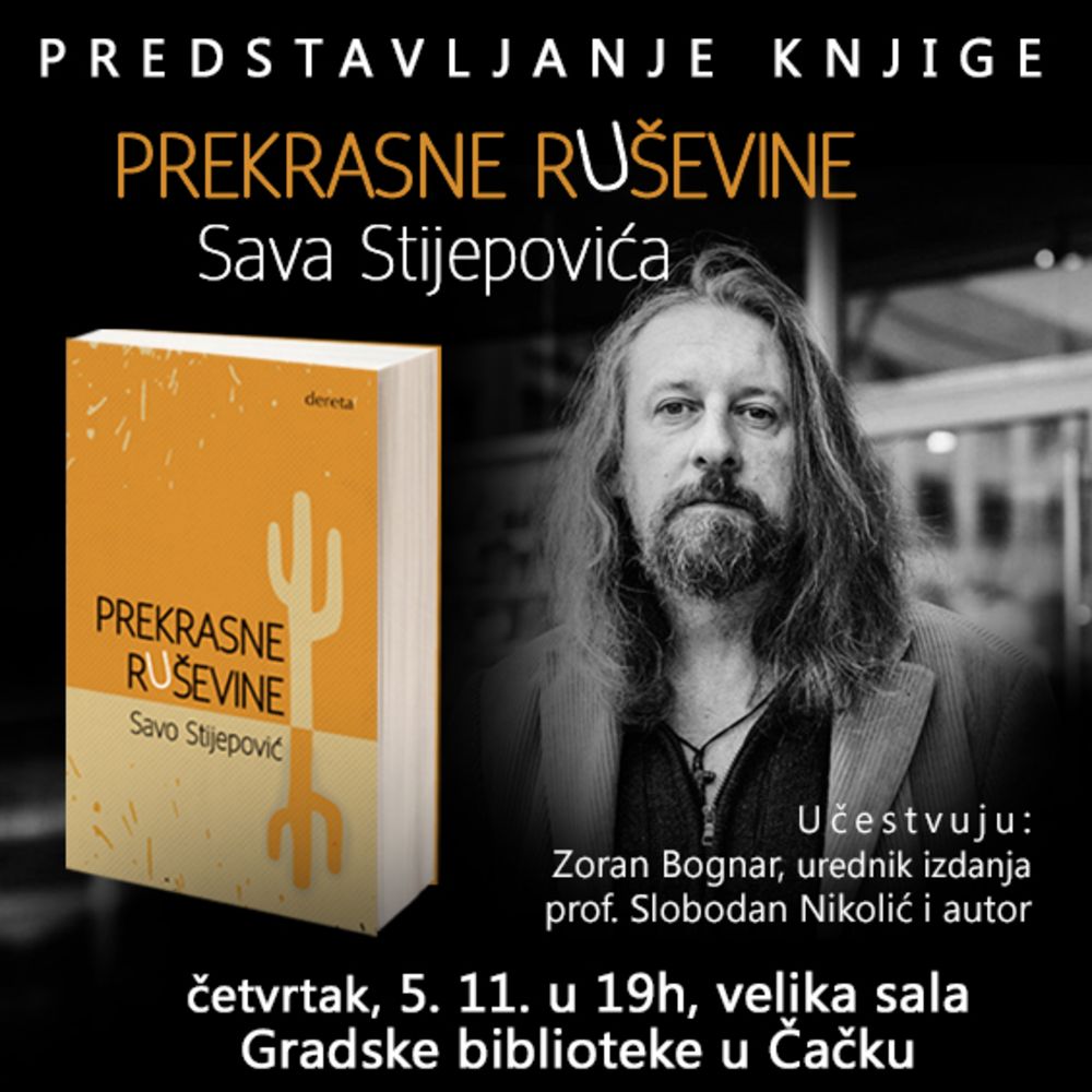 Nova knjiga Sava Stijepovića „Prekrasne ruševine” predstavljena je ljubiteljima književnosti i kvalitetne pisane reči u Velikoj sali Gradske blioteke Čačak u četvrtak, 5. novembra.