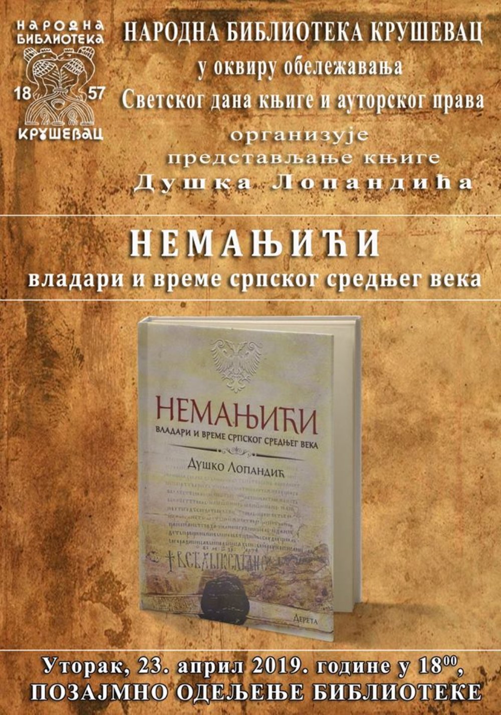 Predstavljanje knjige „Nemanjići: vladari i vreme srpskog srednjeg veka” u Kruševcu