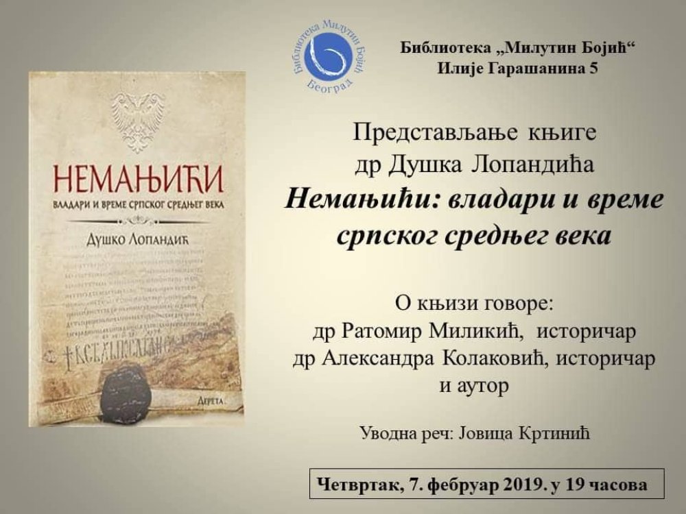 Predstavljanje knjige „Nemanjići: vladari i vreme srpskog srednjeg veka” u Biblioteci „Milutin Bojić“