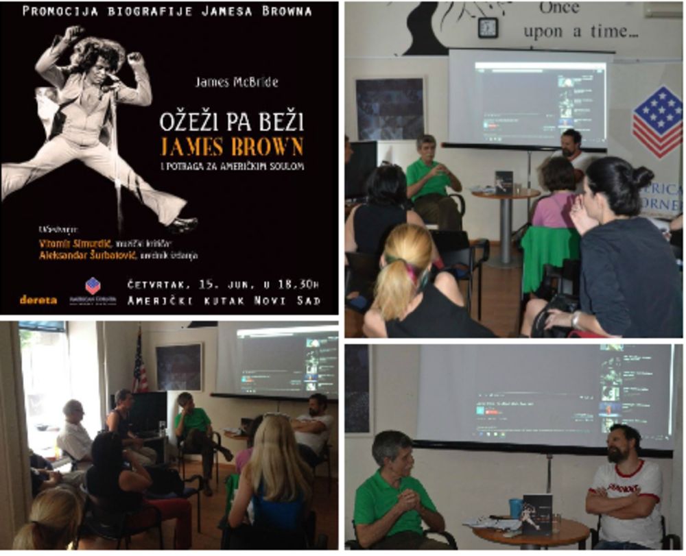 Predstavljanje knjige „Ožeži pa beži: James Brown i potraga za američkim soulom” Džejmsa Mekbrajda u Američkom kutku Novi Sad