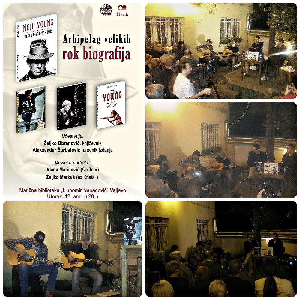 U utorak, 12. aprila, u Matičnoj bibiloteci „Ljubomir Nenadović” Valjevo, predstavili smo rok biografije. Za muzičku podršku pobrinuli su se Vlada Marinović iz benda On Tour i Željko Markuš iz Pacifika.