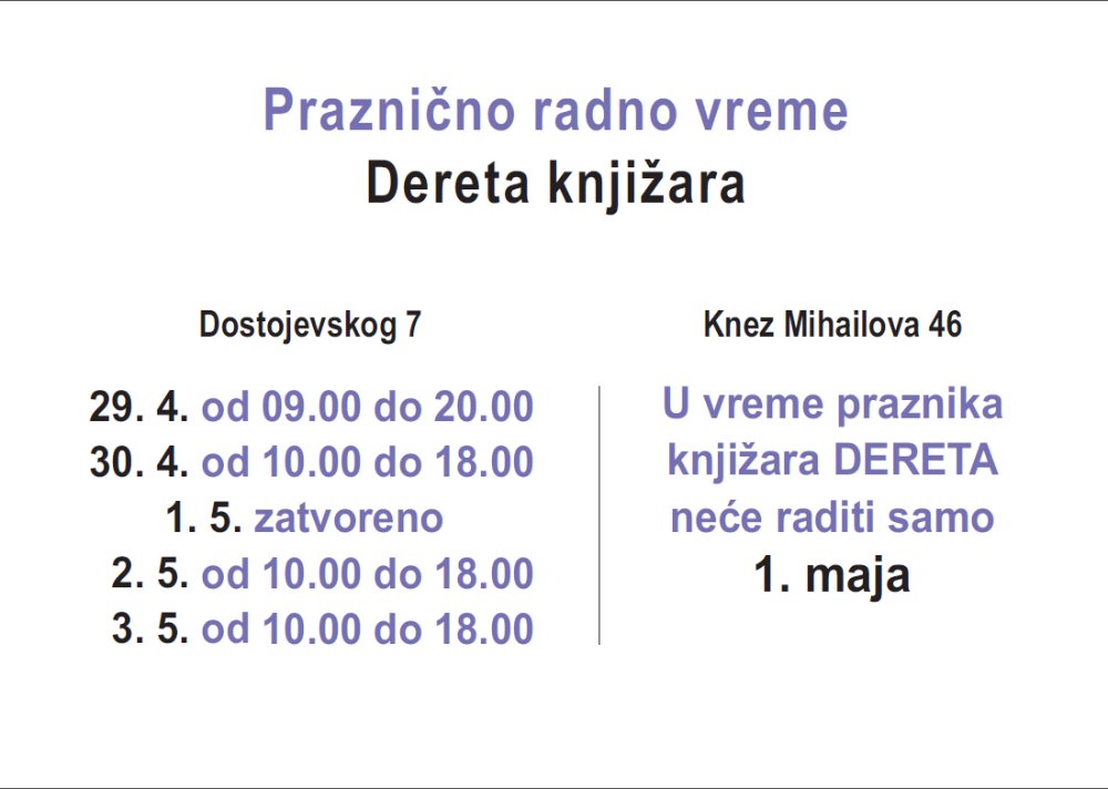 Četvrtak, 14. april, u 12 h Knjižara DERETA, Knez Mihailova 46