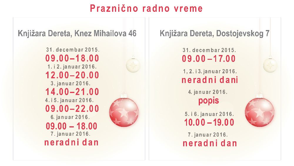 Praznično radno vreme Dereta knjižara