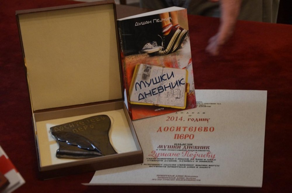Na svečanosti u Udruženju književnika Srbije u sredu, 7.10, dobitnicima je uručena nagrada „Dositejevo pero”. Dušan Pejčić dobitnik je 1. nagrade „Dositejevo pero” u kategoriji za stariji uzrast za knjigu „Muški dnevnik”. U kategoriji za mlađi ...