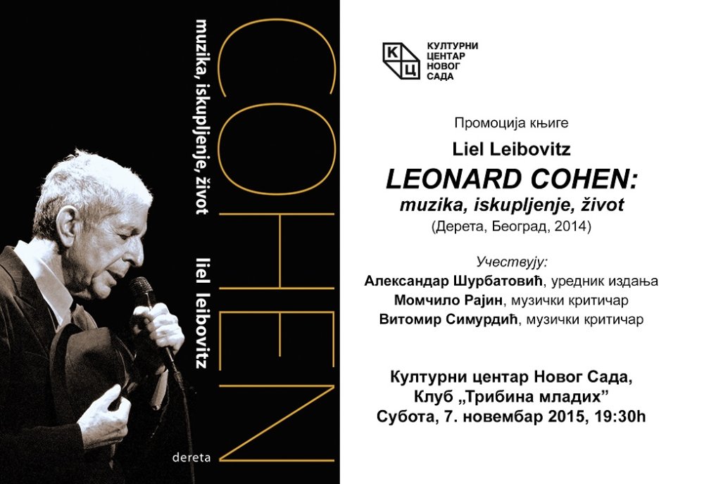 Dereta i Kulturni centar Novog Sada vas pozivaju na promociju knjige „Leonard Cohen: muzika, iskupljenje, život”, autora Liela Liebovitza. Učestvuju: Aleksandar Šurbatović, urednik izdanja Momčilo Rajin, muzički kritičar Vitomir Simurdić, muzički kritičar ...