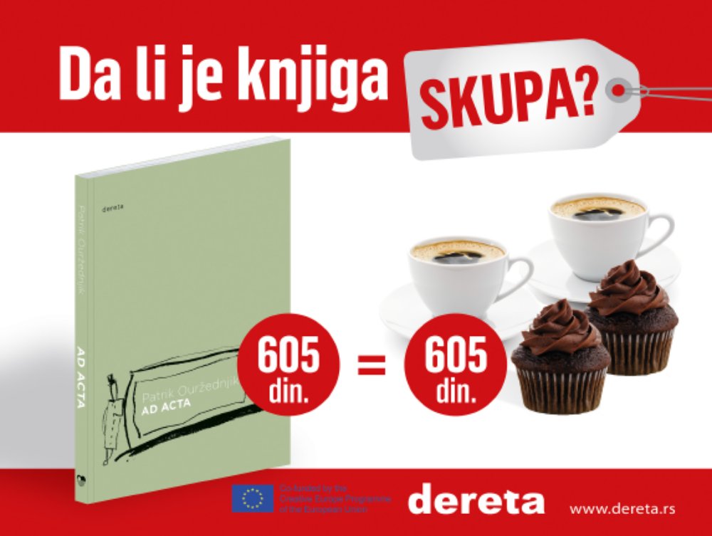 Na bilbordima širom Beograda pojavila se kampanja „Da li je knjiga skupa?” U pitanju je zajednička akcija četiri izdavačke kuće: Dereta, Laguna, Evro Giunti i Čarobna knjiga sa ciljem ukazivanja čitaocima na važnost suprotstavljanja kulture čitanja konzumerizmu i ...