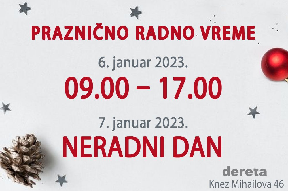 Praznično radno vreme knjižare Dereta