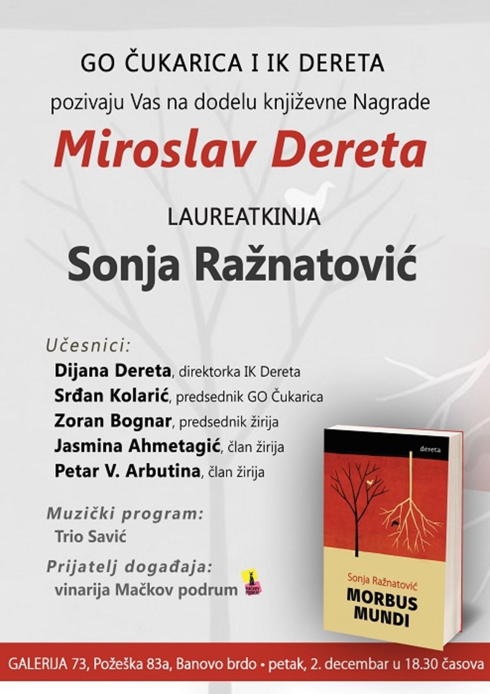 Dodela XVII književne Nagrade za neobjavljeni roman „Miroslav Dereta“