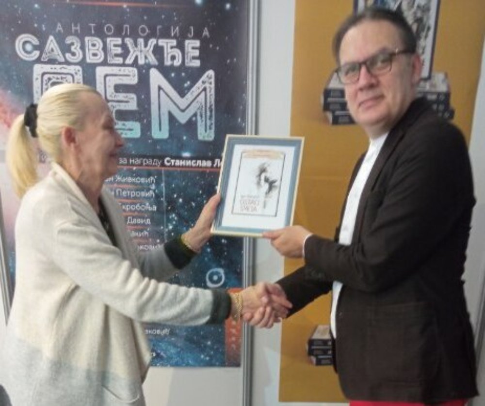 Nagrada Solarisov roman godine uručena Marojeviću za „Ostatke sveta“, dodeljena još krajem 2020, a uručena, iz epidemioloških razloga, tek sad na Sajmu.